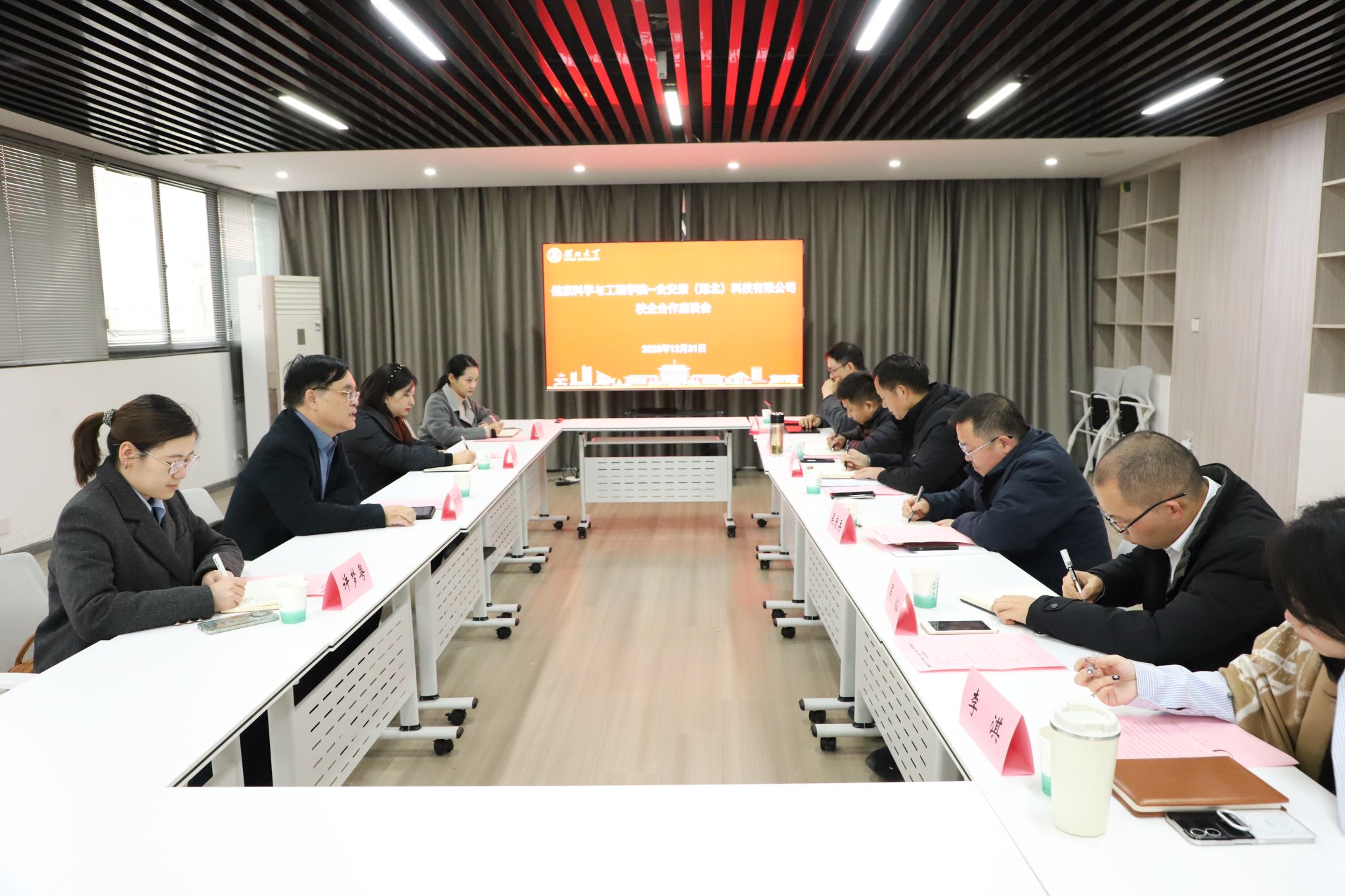 为深入推进产教融合与校企协同育人,2025年12月31日,湖北大学健康科学与工程学院与食安康(湖北)科技有限公司校企合作座谈会举行。食安康公司董事长陈旭光、总经理蒋小玲、常务副总经理许梦粤、办公室主任吕洁,学院党委书记林二友、院长吴康兵、科学工作负责人吴灿及相关专家出席座谈。会议由学院党委副书记李文主持。学院党委书记林二友代表学院致欢迎辞,对食安康公司一行的到来表示热烈欢迎。他指出,深化校企合作是推动...